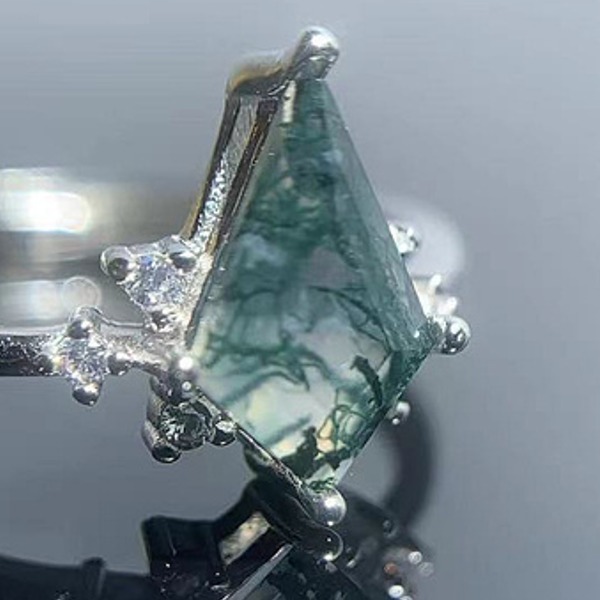 天然カイトモス瑪瑙リング、 6*9mm、シルバー925、シンプルなデザイン、 女性用日常着