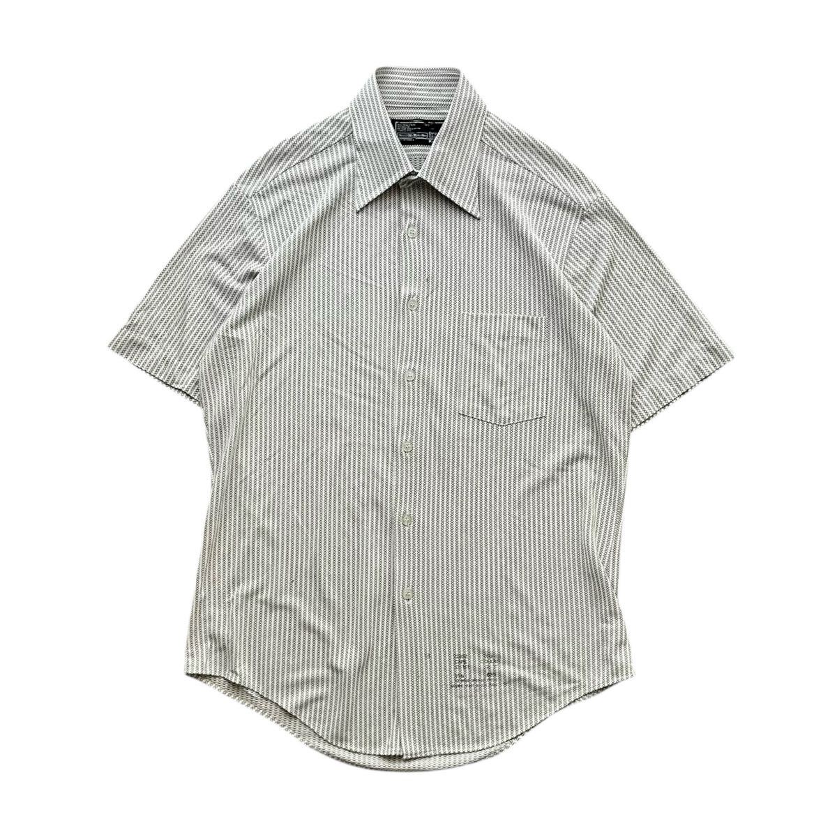 - 70’s Sears シアーズ S/S ニット シャツ 16 1/2 ホワイト 白 ジャガード シアーシャツ ストライプ 半袖 ストアブランド ヴィンテージ