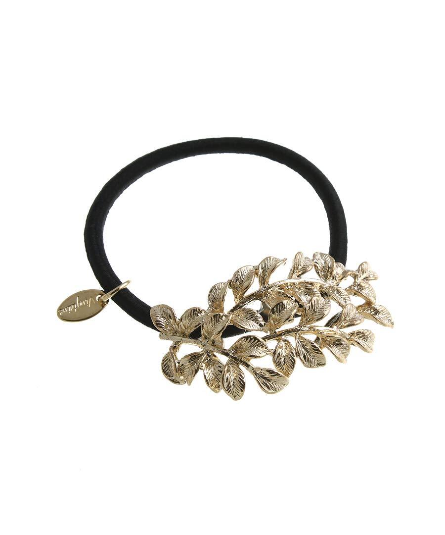 - 【数量限定】ヘアアクセサリー 葉っぱ ゴールド(ヘアゴム) メタル 大人っぽい ヘカフス ヘアアクセ ポニーフック H7332-G