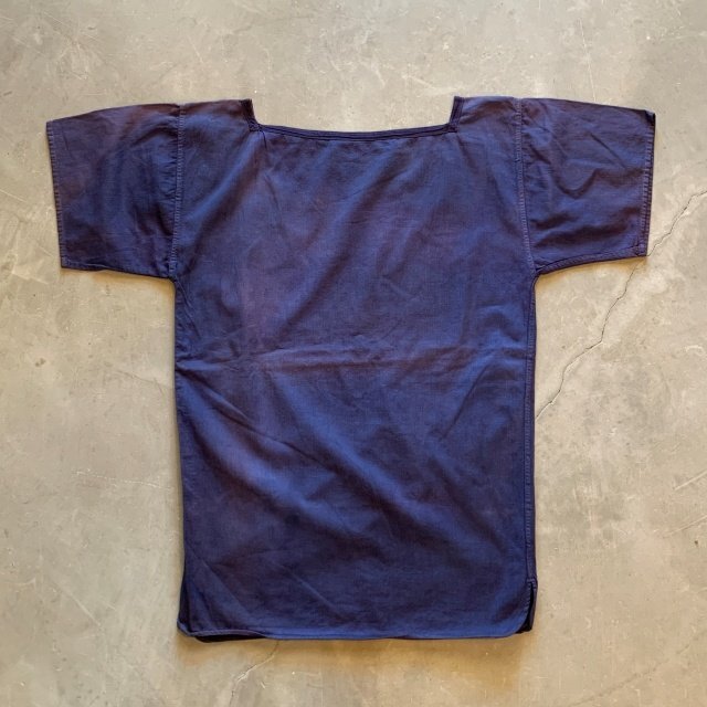 > 【Ladies or XS】ベルギー軍 後染め 半袖セーラーシャツ 紺■ビンテージ オールド レトロ ヨーロッパ古着 レディース ユーロミリタリー