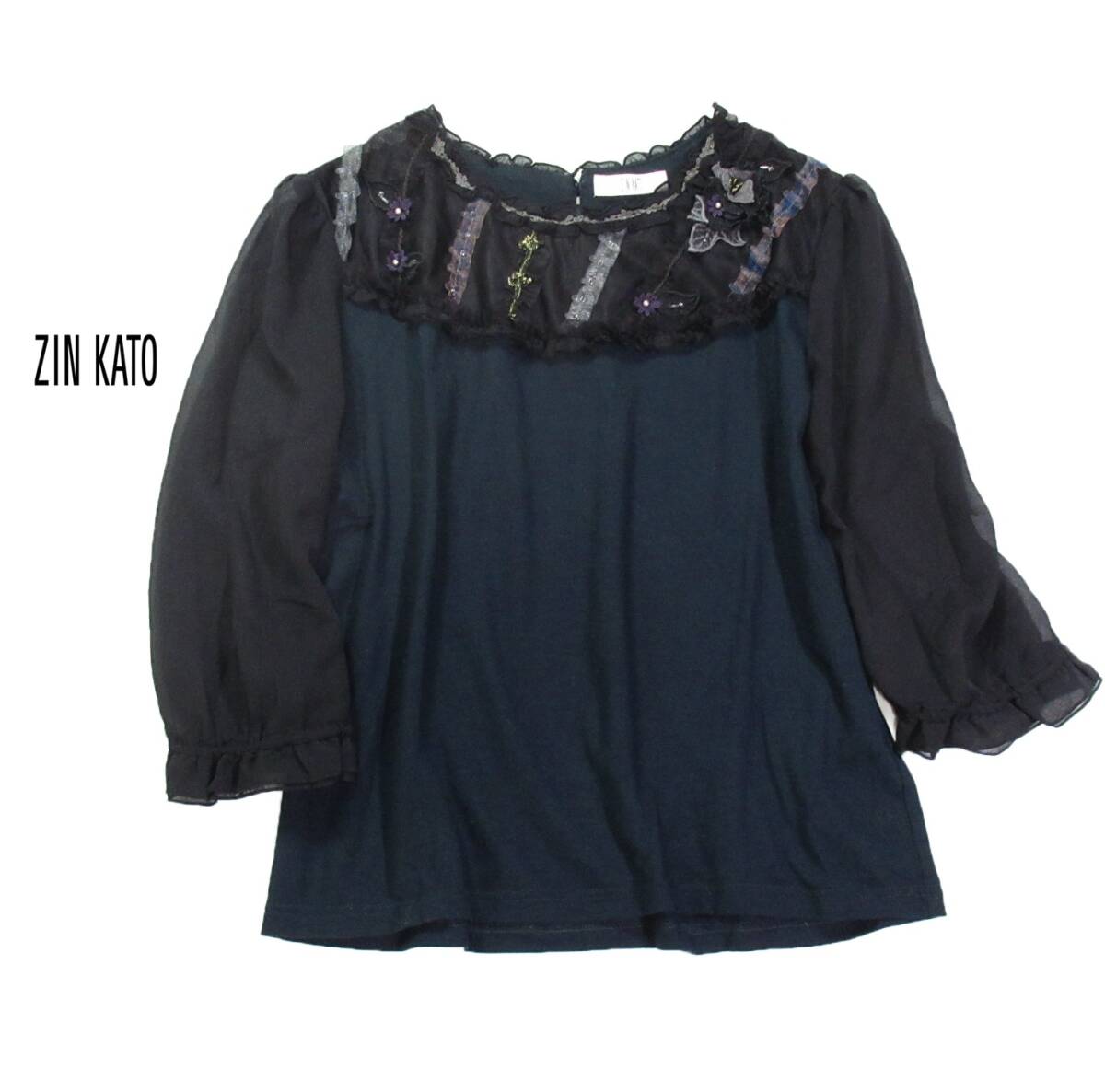 - ジンカトウ ZIN KATO 大人素敵スタイル☆チュール シアー袖 ブラウス カットソー 42