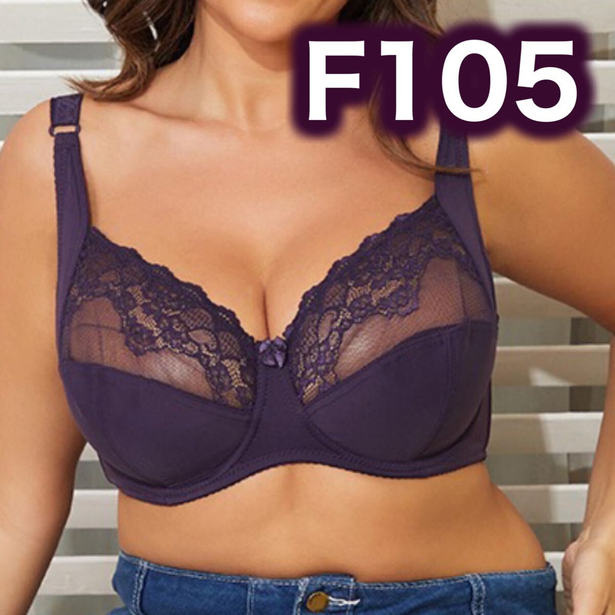 - 大きいサイズ フルカップ ブラジャー パープル 紫 F105 Fカップ 105F 3段ホック 下着 プラスサイズ ワイヤーブラ レース インナー