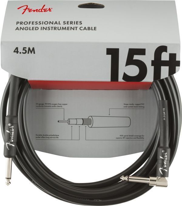 - Fender フェンダー Professional Series 楽器用ケーブル シールド 4.5m ギターケーブル Instrument Cables Straight/Angle, 15ft Black