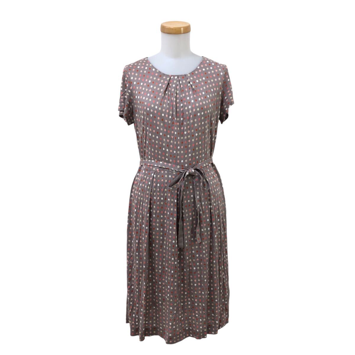 - m638-62 AMACA アマカ ドット 柄 半袖 レーヨン カットソー ワンピース ワンピ ひざ丈 ベージュ系 レディース 38