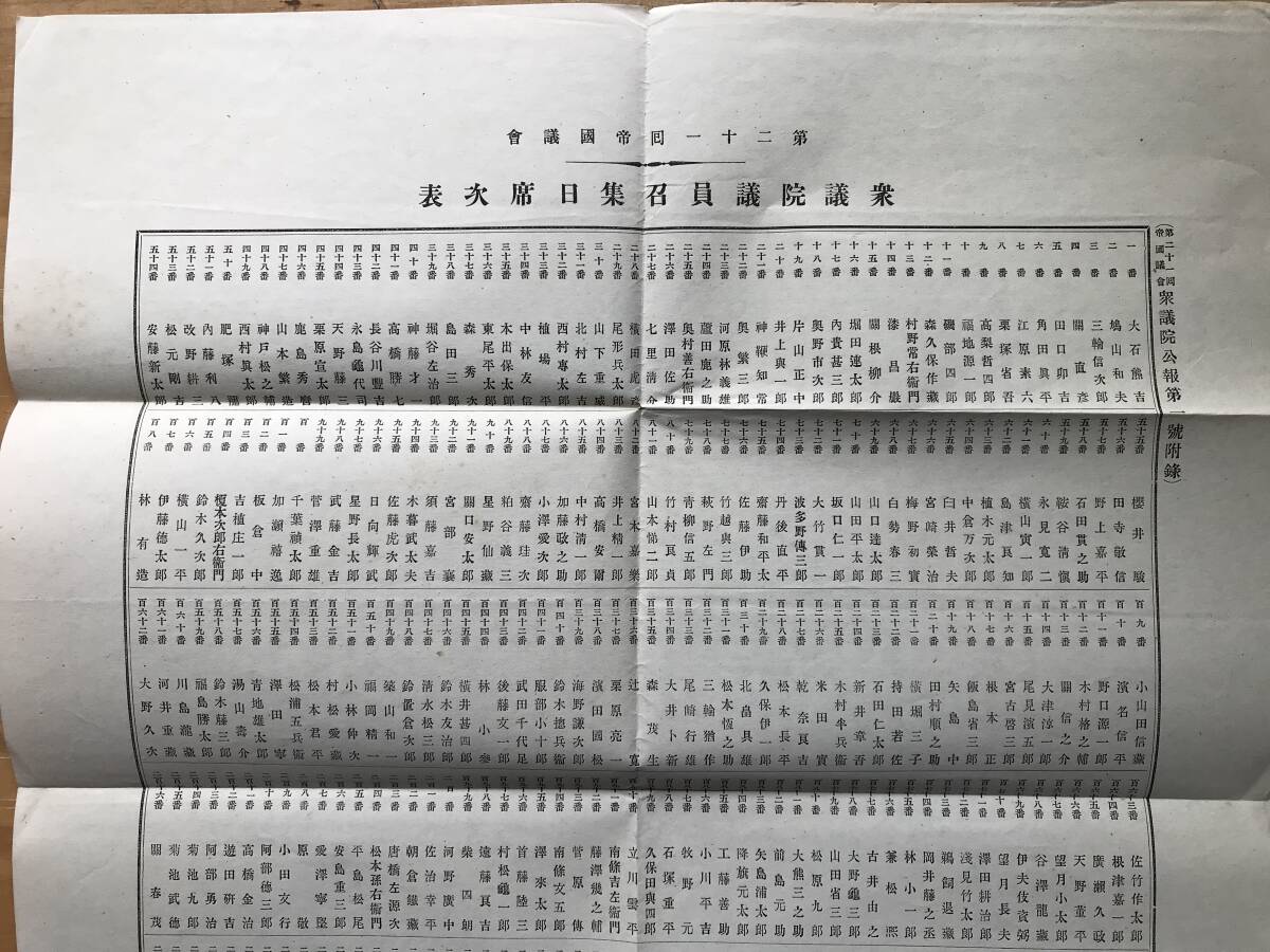 - 『第二十一回帝国議会 衆議院議員召集日席次表 衆議院公報第一号附録 明治三十七年十一月』 1904年刊 ※本紙ハ議員ニ限リテ配付ス 00382
