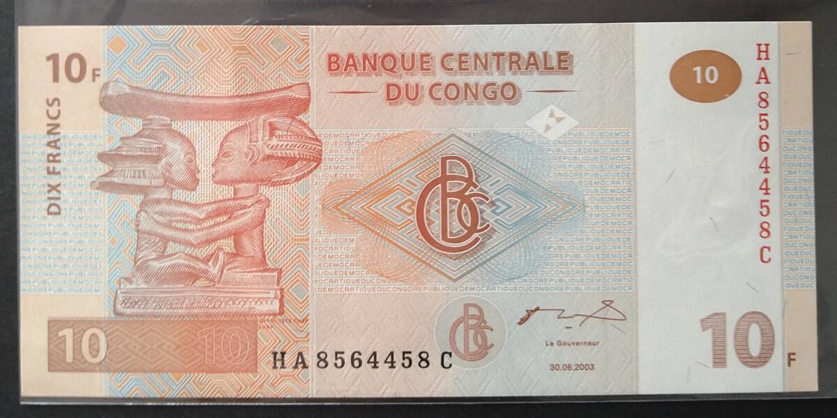 - コンゴ・10フラン紙幣(1枚)【中古】