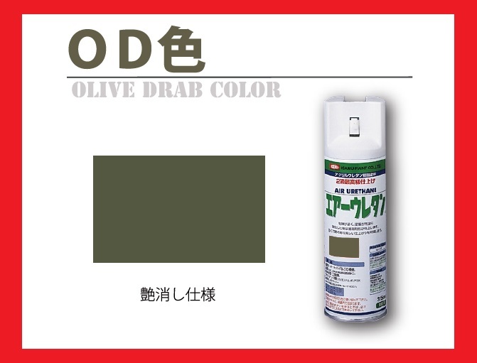 - 【2液性エアーウレタンスプレー】 OD色 艶消 オリーブドラブ色 イサム塗料 isamu ★軍用色