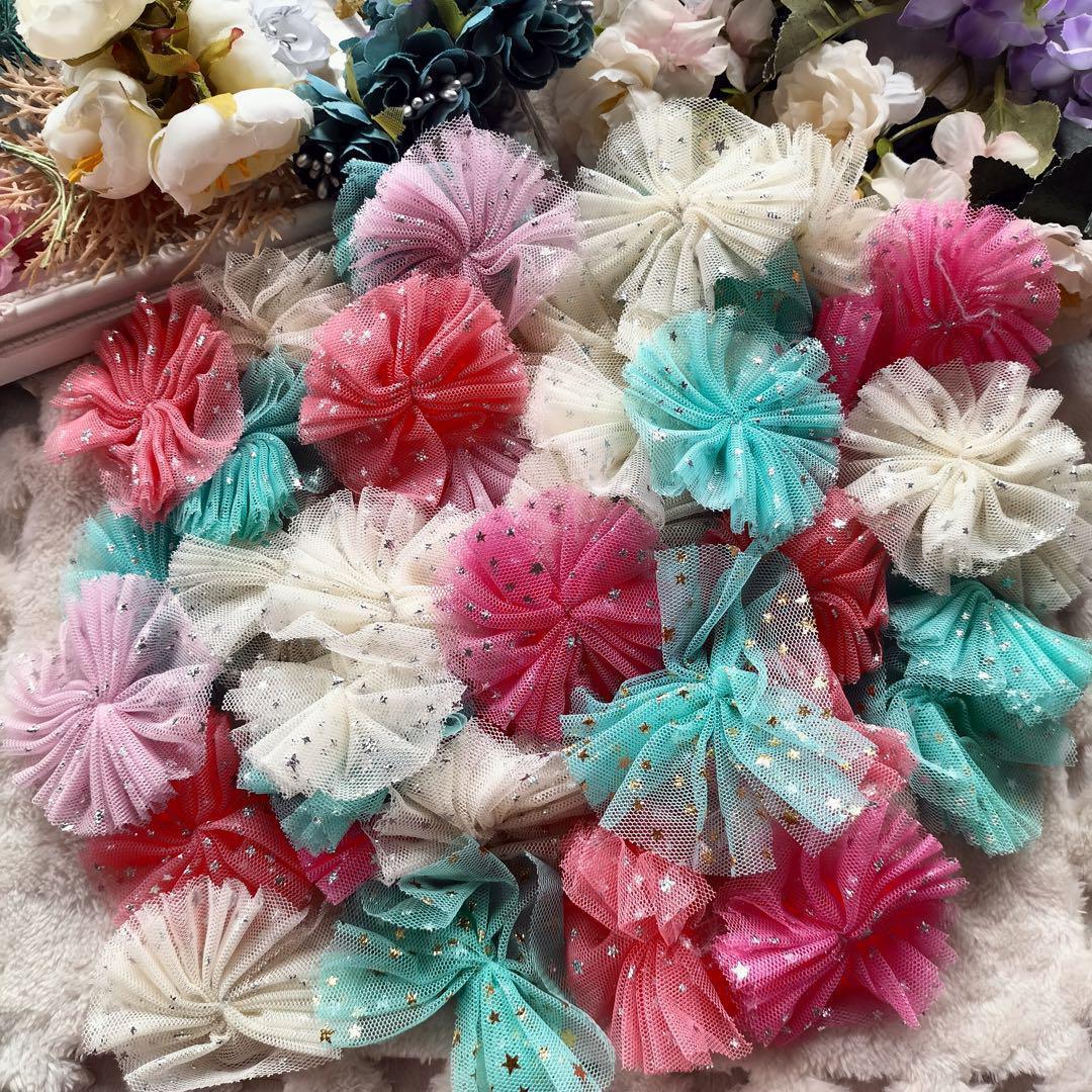 - レース素材 レースリボン デコパーツ 手芸 リボンモチーフ 花 レース フラワー ワンポイント ヘアゴム フラワーモチーフ ワンポイント