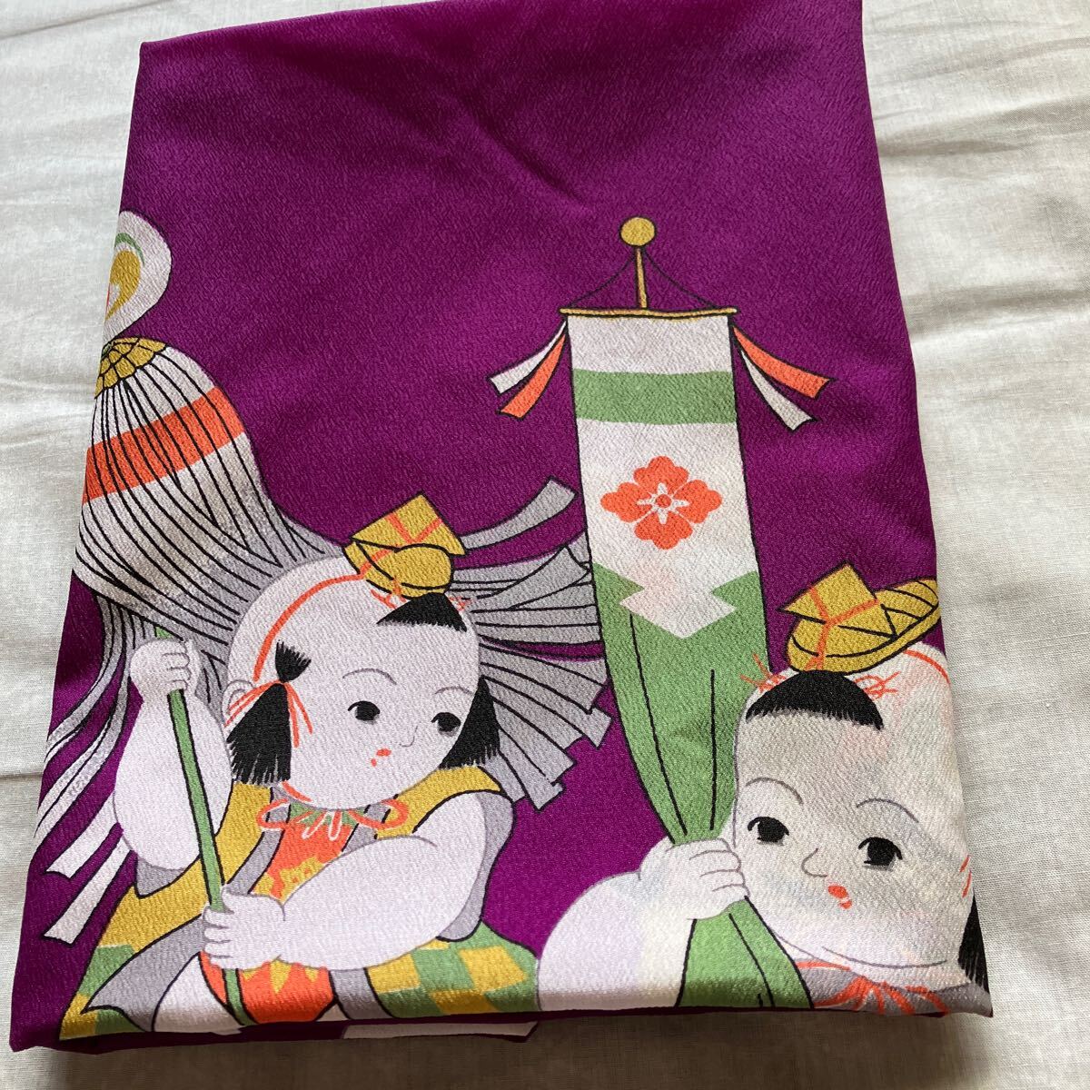 - ナイロン風呂敷レトロ古典柄(稚児)サイズ約90㎝ x 90㎝( ハギレ ハンドメイド リメイク)