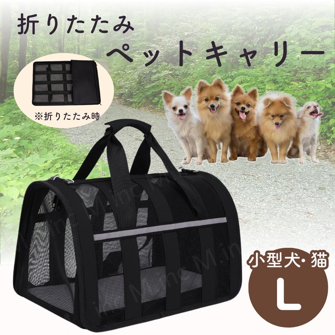- ペット用キャリーバック ブラック ケージ クレート 犬 猫 ショルダー 折りたたみ コンパクト L ペット 旅行 キャリーバッグ キャリーケース