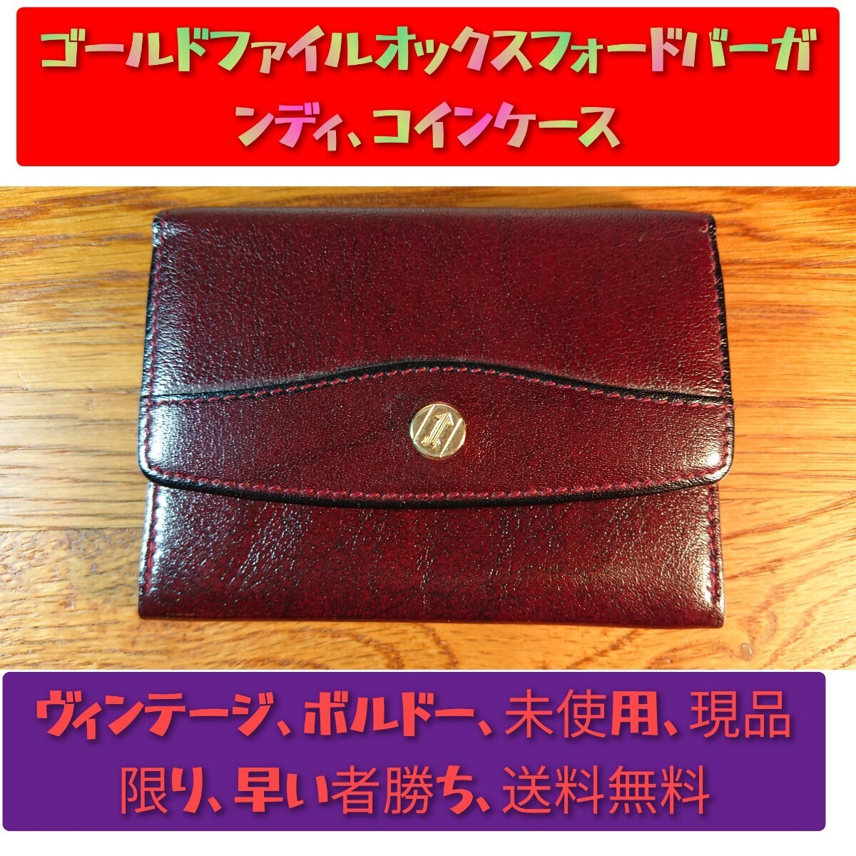 - ゴールドファイルオックスフォードバーガンディ、コインケース、小銭入れ、ヴィンテージ、美品、ボルドー、送料無料、現品限り、早い者勝ち