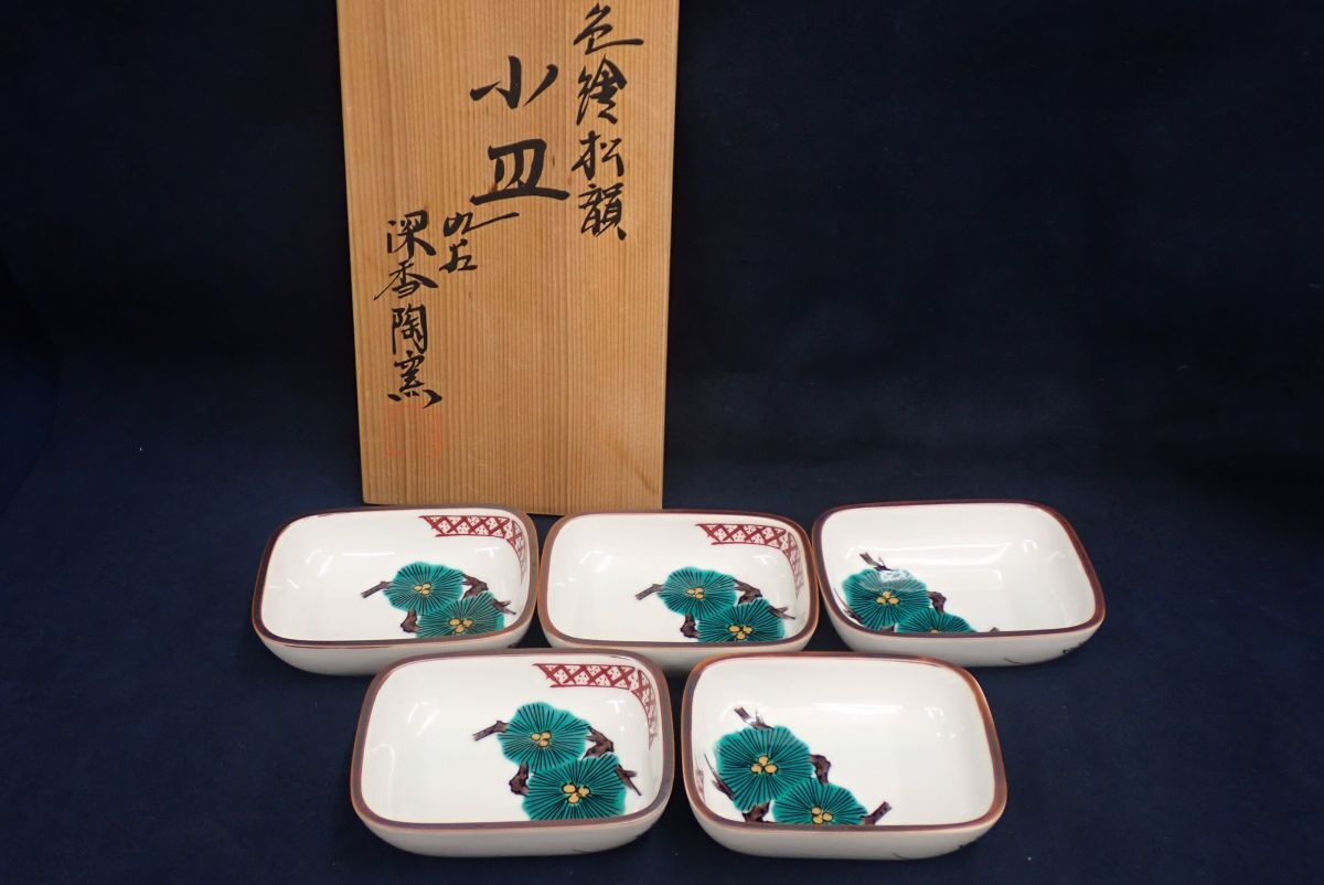- ■42 深香陶窯 松韻 九谷焼 小皿5客 共箱■美品/消費税0円