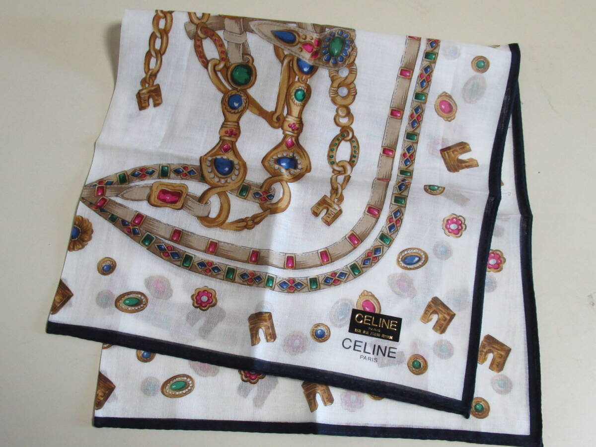 - R7 07★CELINE セリーヌ ハンカチ 約47.5×47.5㎝ 綿100%