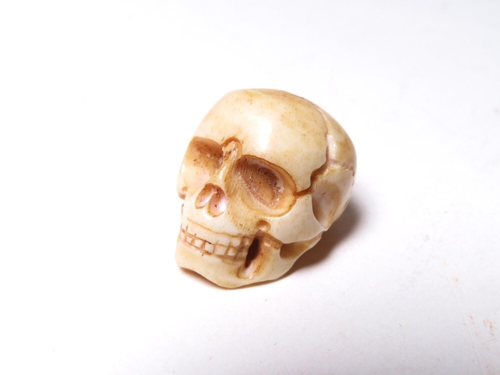 - 【10828】明治時代 鹿骨 髑髏彫 緒締 ⑱(初品・買取品)