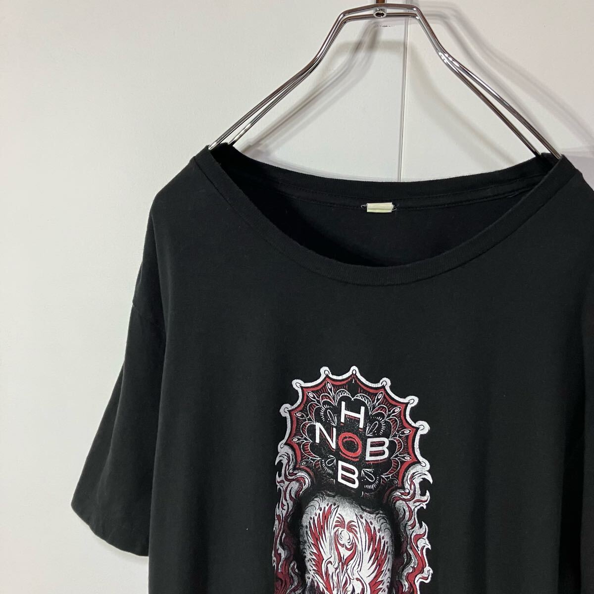 - 古着 スカル プリント クルーネック 半袖 Tシャツ 大きいサイズ ブラック XL