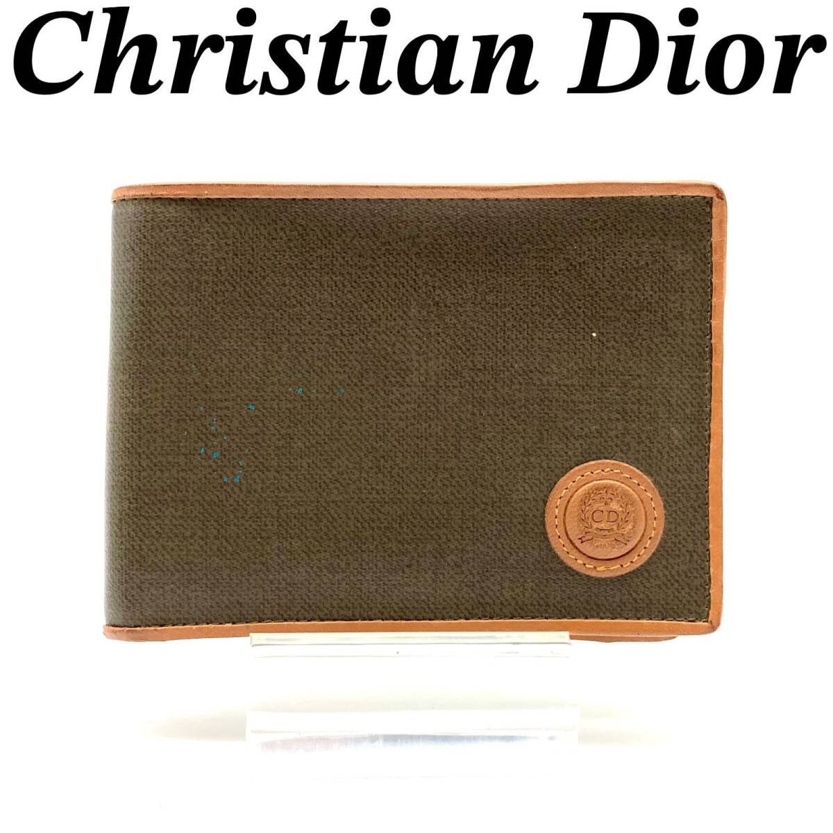 - クリスチャンディオール 二つ折り財布 短財布 レザー ダークカーキ 70712