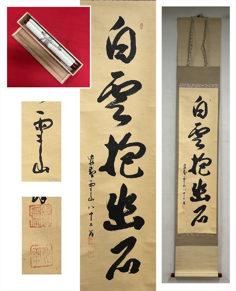 - 【千寿】大徳寺派 聚光院 中村雪山 (戒仙) 白雲抱幽石 一行書 紙本 d1625◆箱 在銘 季節掛 茶掛 掛軸 掛物 茶道具