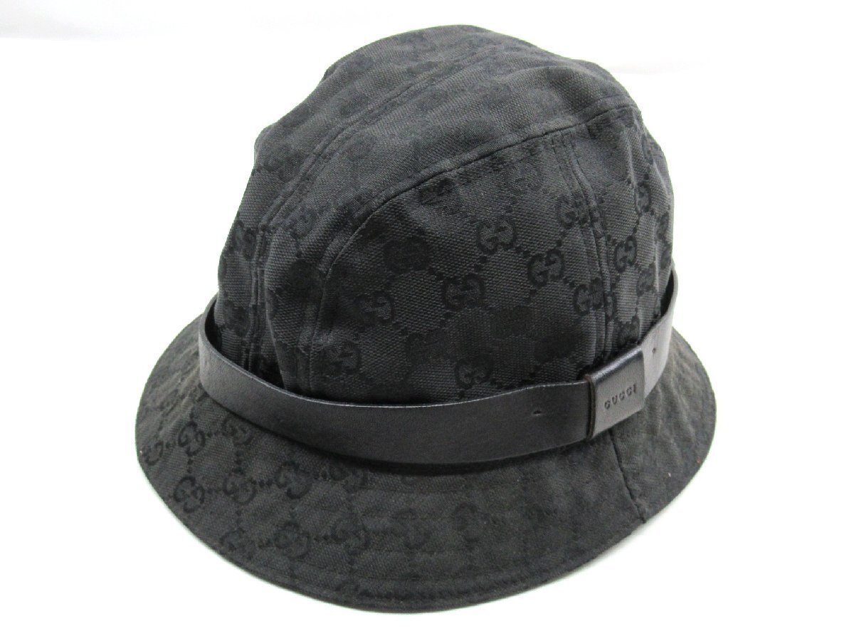 - ☆【B送900円】2084 GUCCI グッチ GGキャンバス バケットハット 帽子 ブラック レザー×キャンバス地 イタリア製 XL
