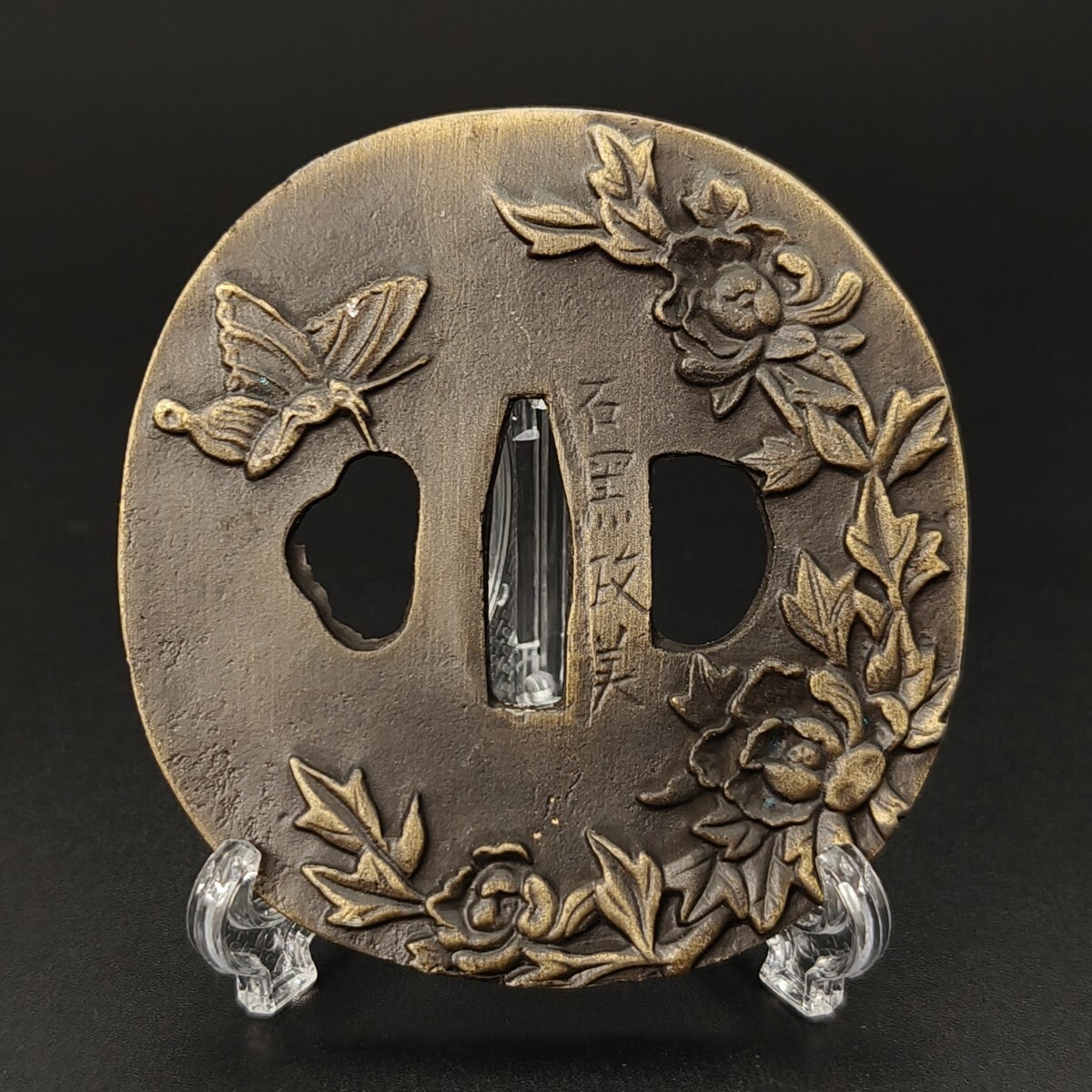 - GK187 日本刀装具 刀鍔 花の図 合金製 刀剣美術 武道具