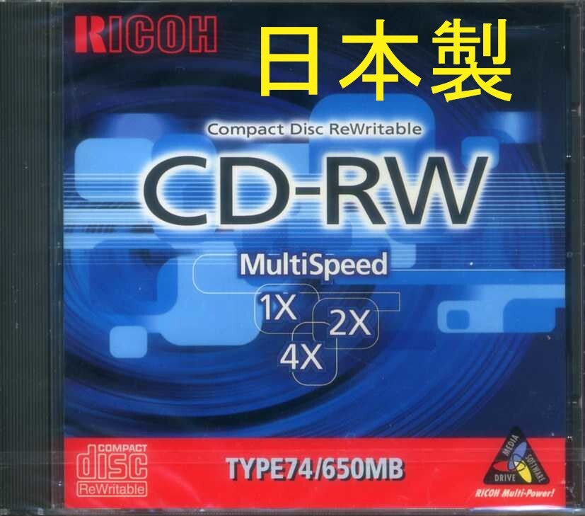 - RICOH CD-RW 74/650MB 4倍速対応 10mmケース 74R-AZ2 原産国 日本 未開封