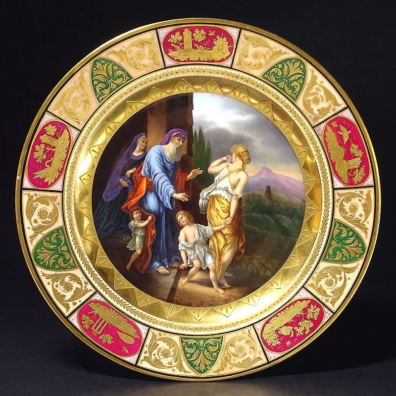 > 慶應◆20世紀初頭頃 ヴィエナスタイル 金彩装飾 ハンドペイント『Verstossung der Hagar ハガルの追放(A.Werff原画)』飾皿 直径24cm