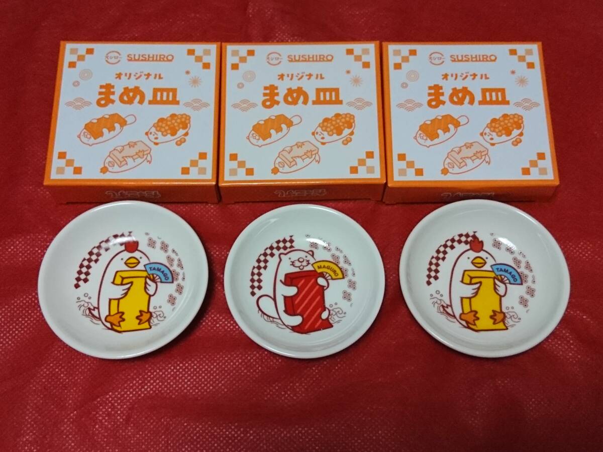 - 3枚セット スシロー オリジナル まめ皿 だっこずし たまコッコ x2 まぐろラッコ x1 マグロ