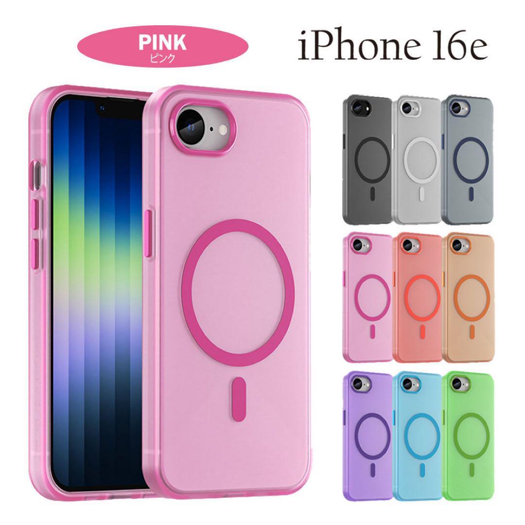 > iPhone16eケース MagSafe充電対応:ピンク.☆おまけガラスフィルム付