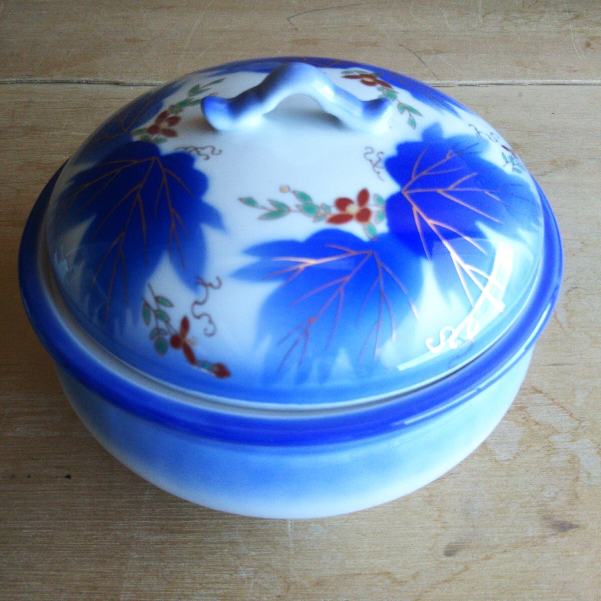 - 25072503 有田焼 錦松梅特製 蓋付き鉢 彌乃為 直径約15cm 足付 小花 金彩