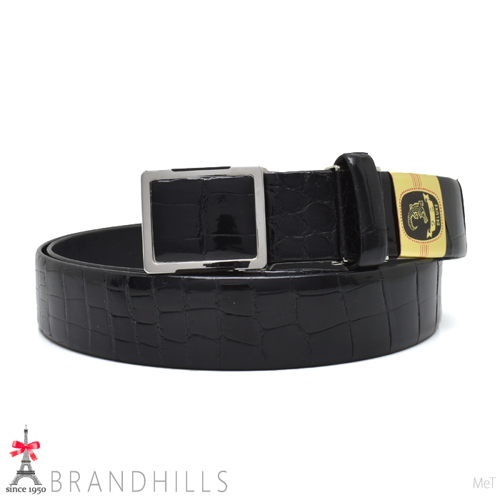> クロコダイル ベルト メンズ ブラック シャイニング加工 紳士用 黒 幅35ミリ スライド式バックル 裏牛革 日本製 新品