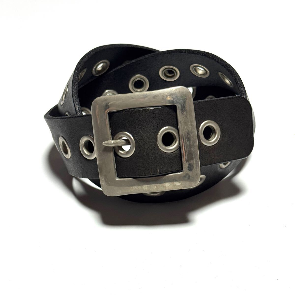 - 〜w75㎝ 本革 ベルト メンズ イギリス製 ブラック 黒 パンクロック メタル レゲエ レザーベルト 黒