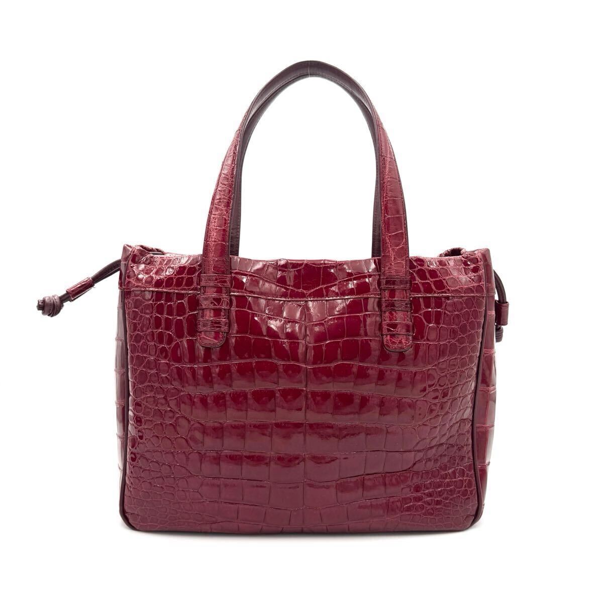 - シャイニングクロコダイル ワニ革 レザー ハンドバッグ トートバッグ JRA レッド