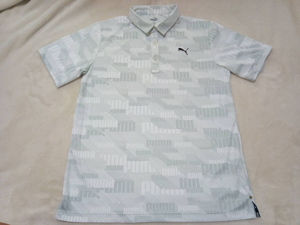 - 新品未使用 PUMA プーマゴルフ 光沢シリコンエンブレムモイスチャーマネージメント機能dryCELL PUMAロゴ総柄ポロシャツ アジアXLサイズ