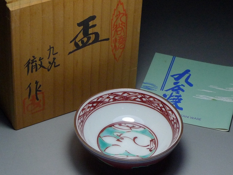 - 60TR56★酒器 九谷焼 麻木徹造 盃 共箱付・色絵磁器 陶磁器 和食器 食器