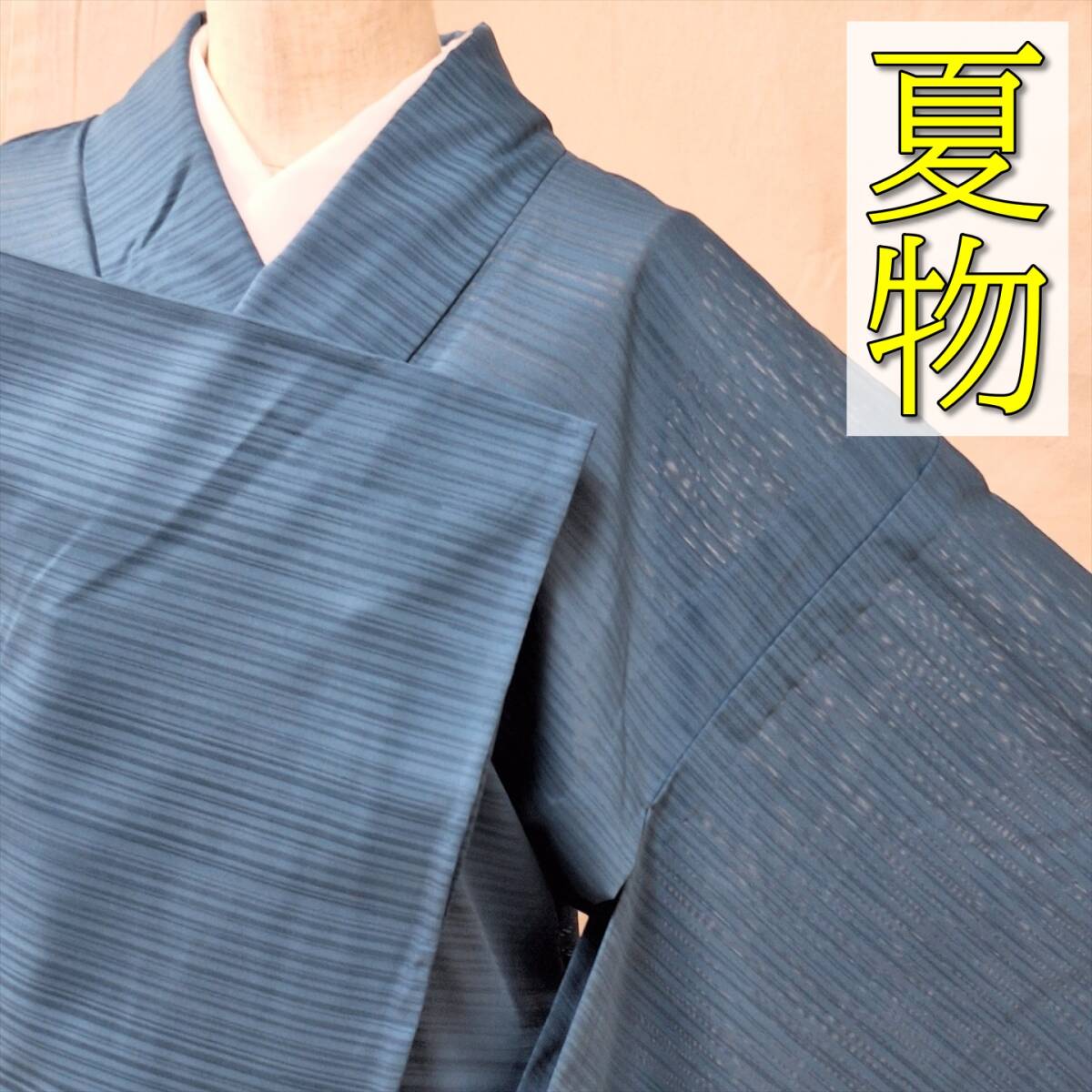 - 即決■着物の越田■裄62.5身丈159 化繊 色無地 夏物 絽 美品 変わり絽 紋なし ニュアンスカラー ブルーグリーン系 ■ま24E04a