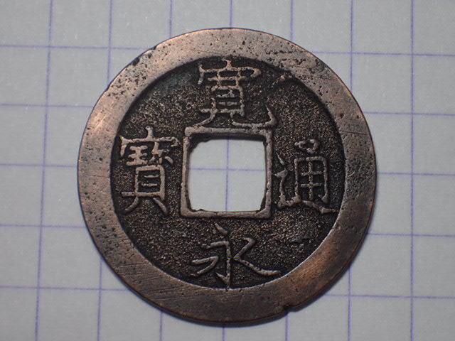 - G102-1 濶縁(十万坪銭)1726年 武蔵国江戸深川十万坪 古銭 銅銭 寛永通寶 穴銭 江戸時代