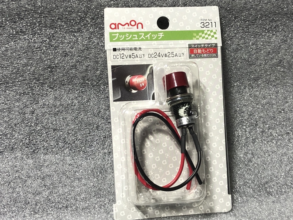 > ★ エーモン 製★品番 3211 スイッチパターン PUSH-ON 自動もどり プッシュ スイッチ ボタン オン オフ 赤 検)配線 部材 素材 極 + -
