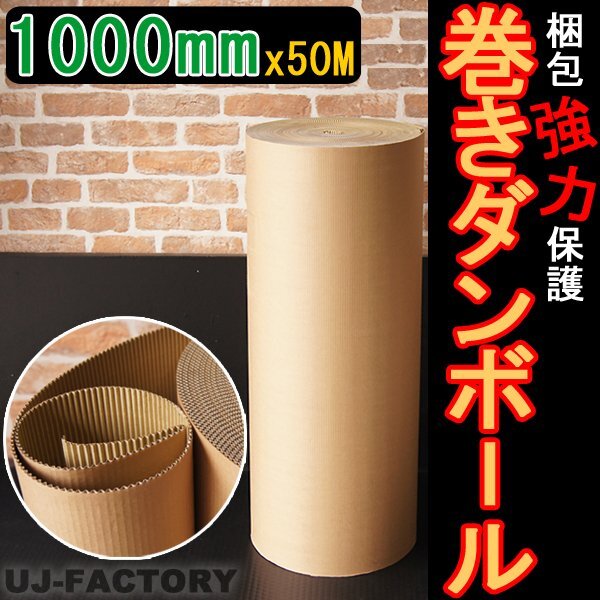 > 【激安!即納】超丈夫/巻きダンボール 1000mm×50m 巻きダン/片段/巻き段【1本】表側:クラフト50g×裏側:クラフトNC110g