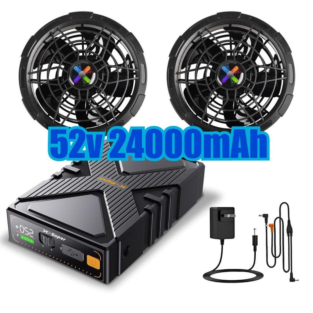 - 52V 暴風 ファンバッテリーセット 24000mAh 風量調整 急速充電 熱中症