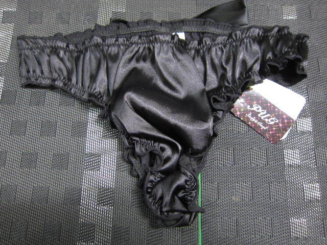 - ブラジリアン サテン調 リボン ブラック Tバック 海外Mサイズ 新品 未使用品