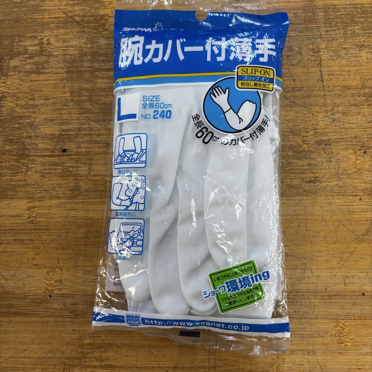 - 【未使用】SHOWA 腕カバー付手袋薄手 No240 ホワイト Lサイズ 全長60cm 長期保管品◆A0604