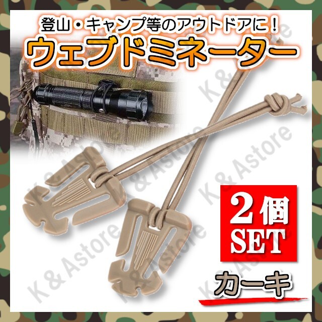 - ウェブドミネーター 2個 バッグ ベルト ゴム紐 アウトドア レジャー サバゲー 登山 ウェビングクリップ ベルトクリップ カーキ 茶