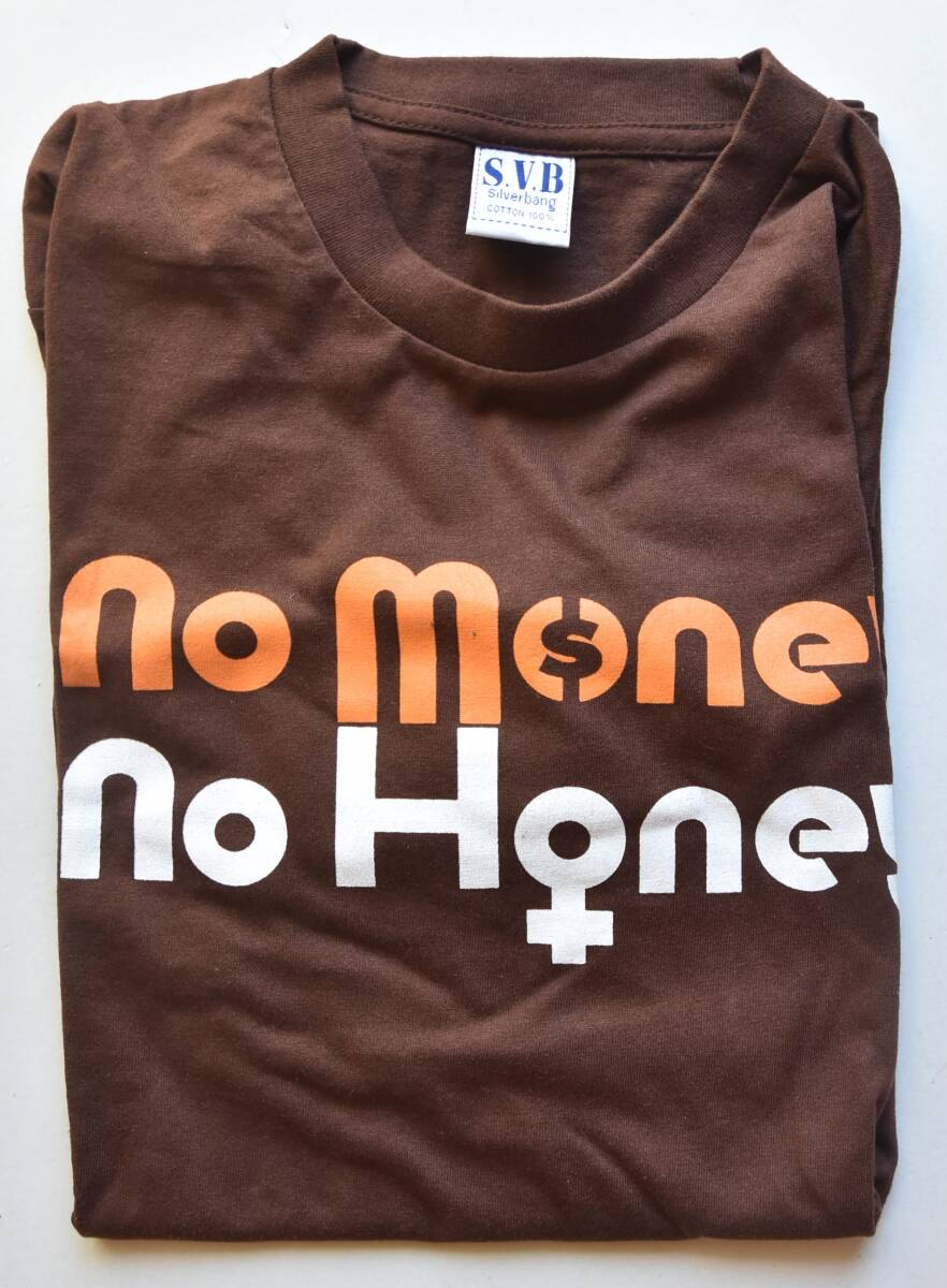 > Lサイズ おもしろTシャツ 100%コットン NO Money NO Honey 未使用新品 金がなければ愛は無し ブラウン