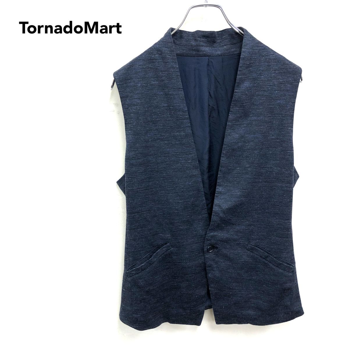 > 2S2839-W-N◆TornadoMart トルネードマート リネン混 ベスト ジレ 裏地あり ポケット付き シンプル◆size:L ネイビー系 リネン 麻 綿