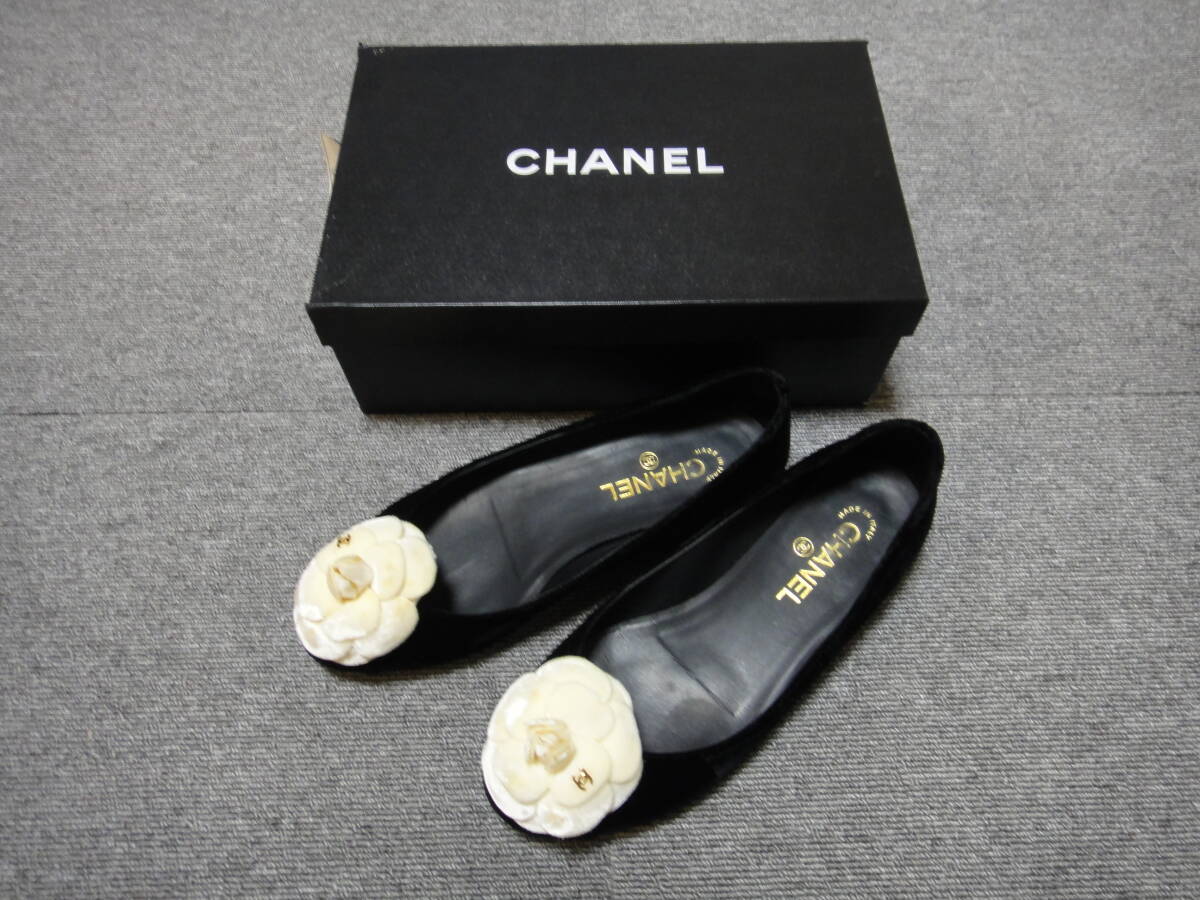 - CHANEL ブラック フラットシューズ フラワーモチーフ サイズ38 カメリア付き