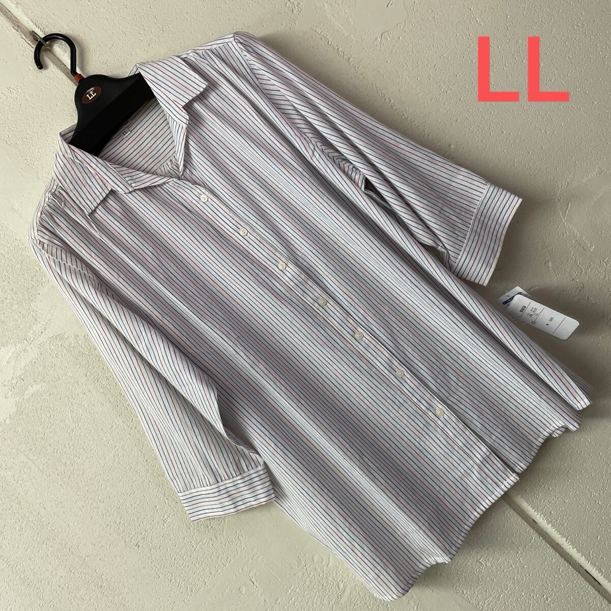 - 訳ありLLサイズ綿100%七分袖シャツブラウス赤紺
