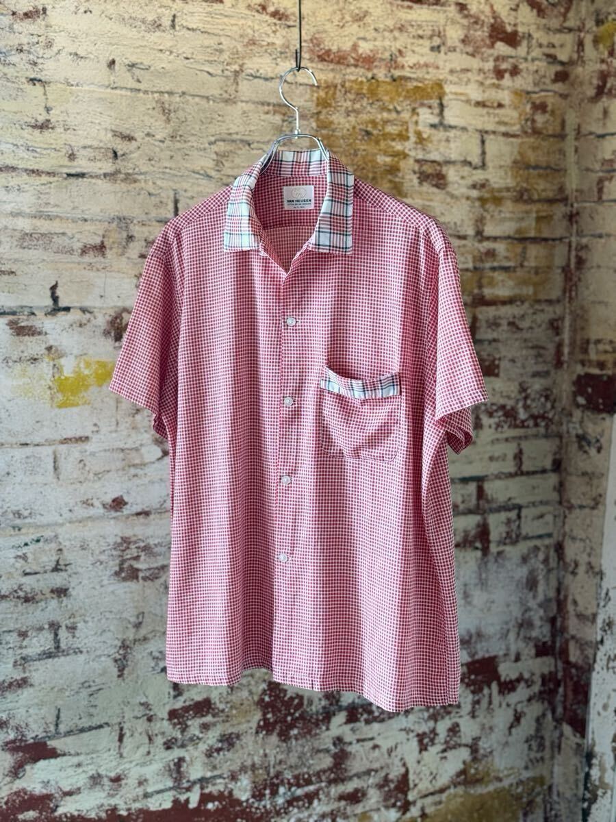 - 60s VAN HEUSEN OPEN COLLAR GINGHAM CHECK SHIRT ヴィンテージ オープンカラーシャツ ギンガムチェックシャツ 半袖シャツ 50s 送料無料