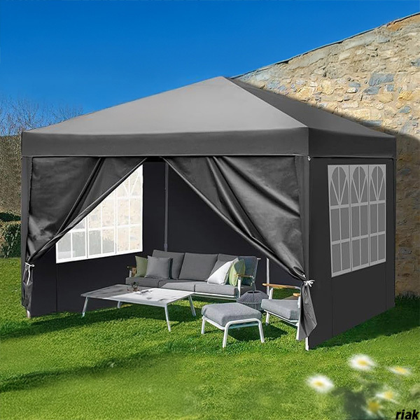 - 【大型、サイドシート付きタープテント】 ワンタッチテント 3m×3m キャンプ 日よけ アウトドア イベント 収納バッグ付き グレー