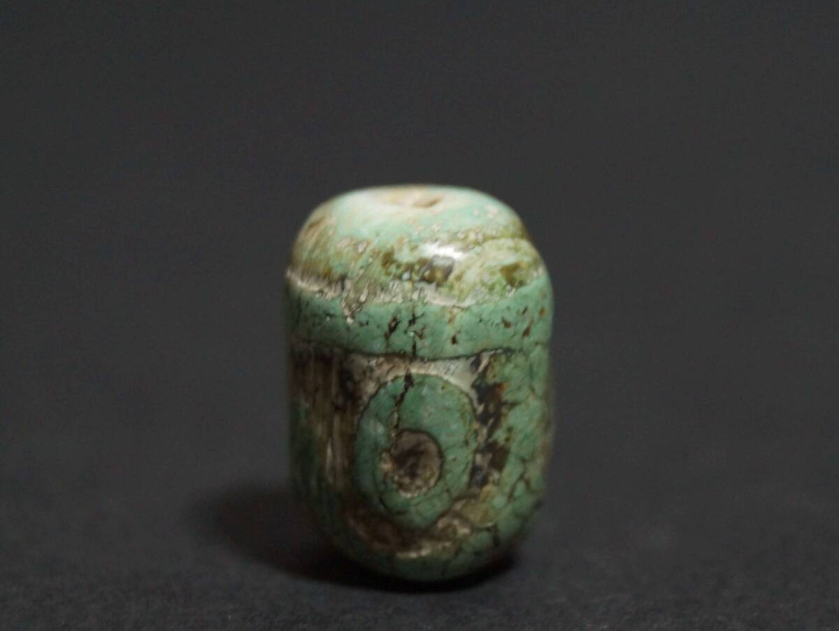 > 【寂】オールドチベット メノウ瑪瑙 風化三眼天珠 根付 緒締玉アゲート提げ物 Dziビーズ装飾品 長さ1.8cm☆美しい石目☆s70728