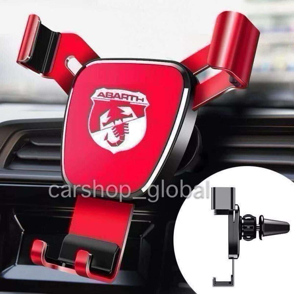 > フィアット アバルト柄 エアコン スマートフォンホルダー レッド チンク/500/アバルト/124スパイダー/パンダ/プント等 iPhone/Android等