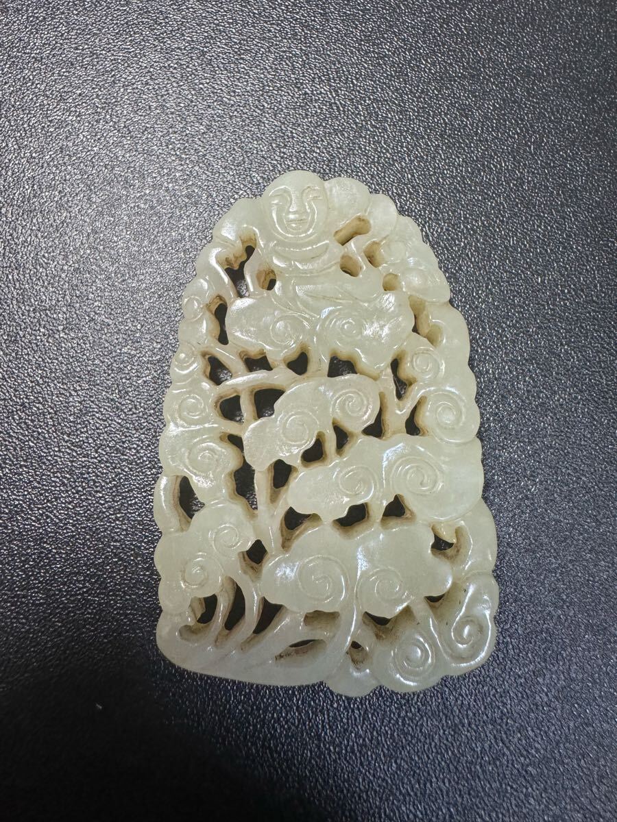 - 本玉 天然石 子供 老玉和田玉 清時代古玉中国古美術骨董 玉彫 根付 清代手彫 透かし彫 掛物